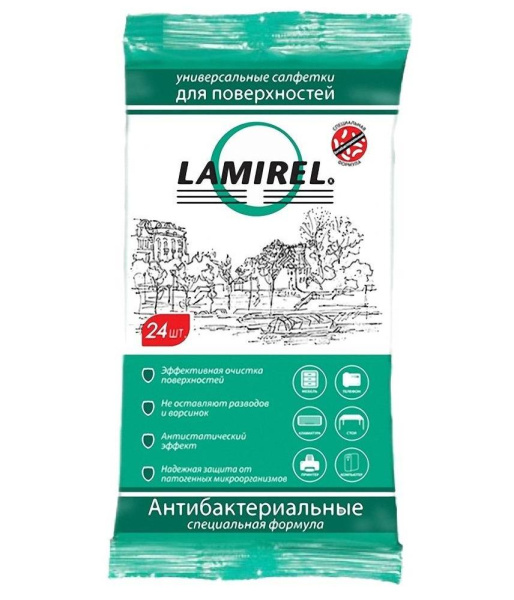 —Салфетки чистящие для поверхностей Lamirel LA-61617, антистатические, мягкая упаковка 24шт