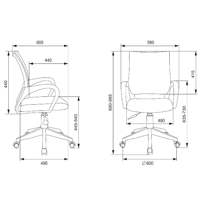 | Высота кресла (мин), мм | 890 |