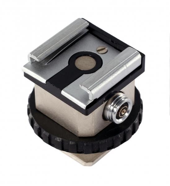 —Переходник "горячий башмак" под зонт, для вспышки, с гнездом для синхрокабеля PF1041-2